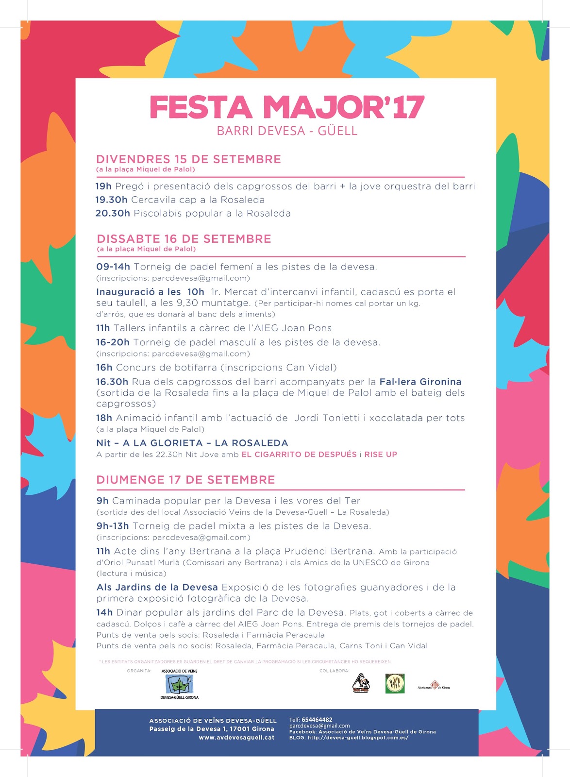 EL CAP DE SETMANA DEL 15, 16 i 17 DE SETEMBRE, AL BARRI ESTAREM DE FESTA MAJOR I TENIM MOLTES ACTIVITATS PREPARADES!! US HI ESPEREM!!