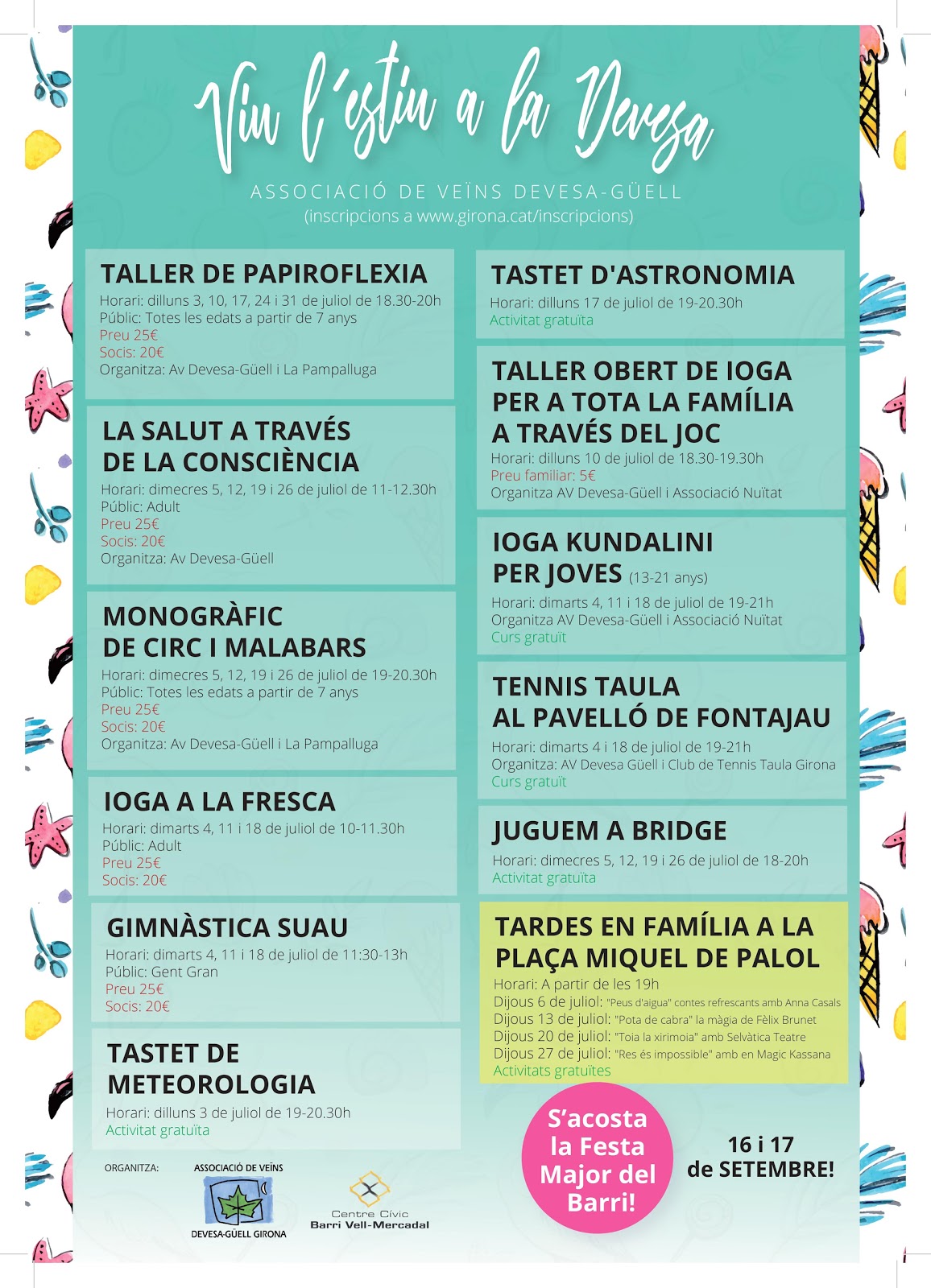 Inscripcions a: www.girona.cat/inscripcions fins el 13 de setembre